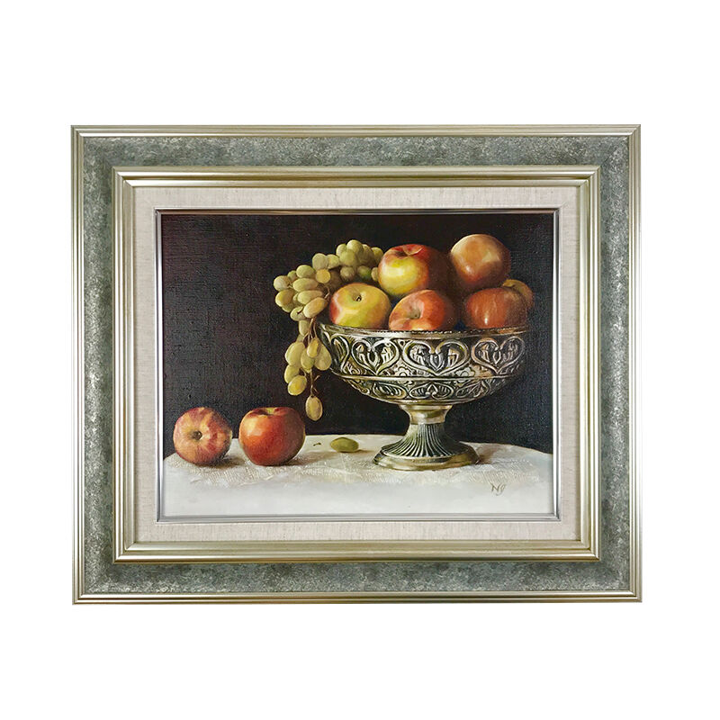 【作品名】 果物と銀の器 【作品説明】 伝統的な静物画の技法を用い、果物や器の質感、光の変化を表現。 「静物画」は英語で「still life」。直訳すると「静かな命」。一見、動きのない世界を描いているよう … 今月の絵 ~応接室より~